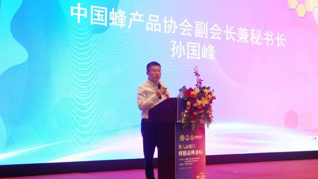 中國(guó)蜂產(chǎn)品協(xié)會(huì)副會(huì)長(zhǎng)兼秘書長(zhǎng)孫國(guó)峰在論壇發(fā)言